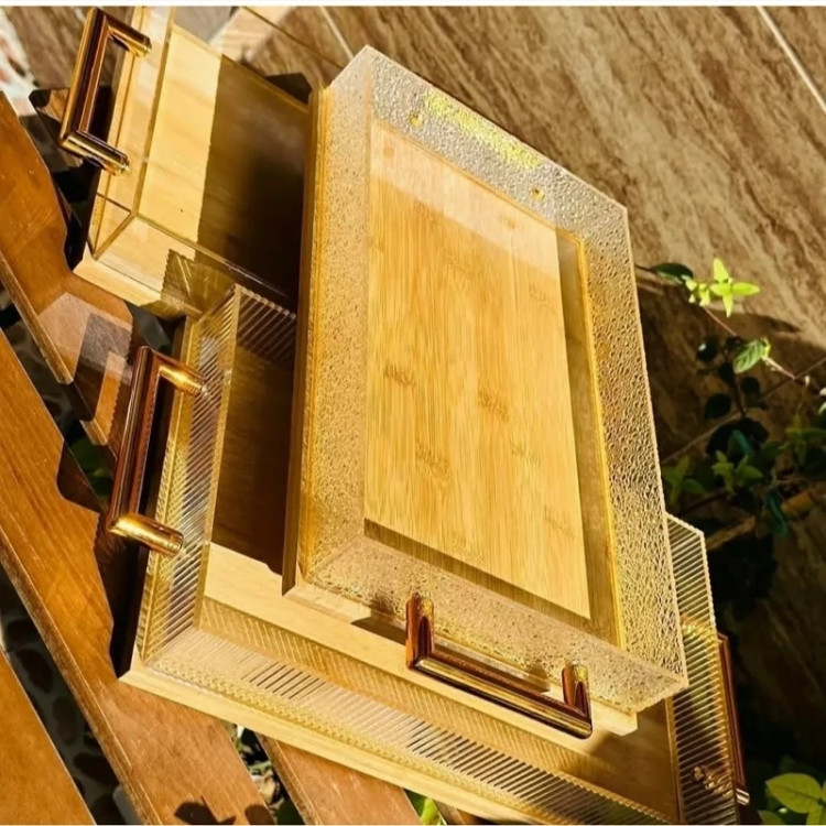 ست سینی بامبو دو عددی دور آکرولیک (پس کرایه)