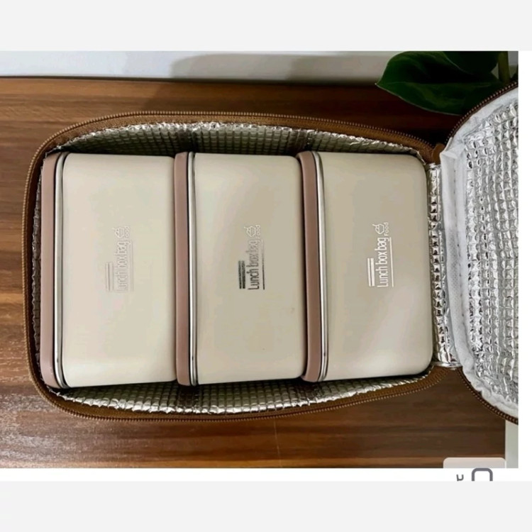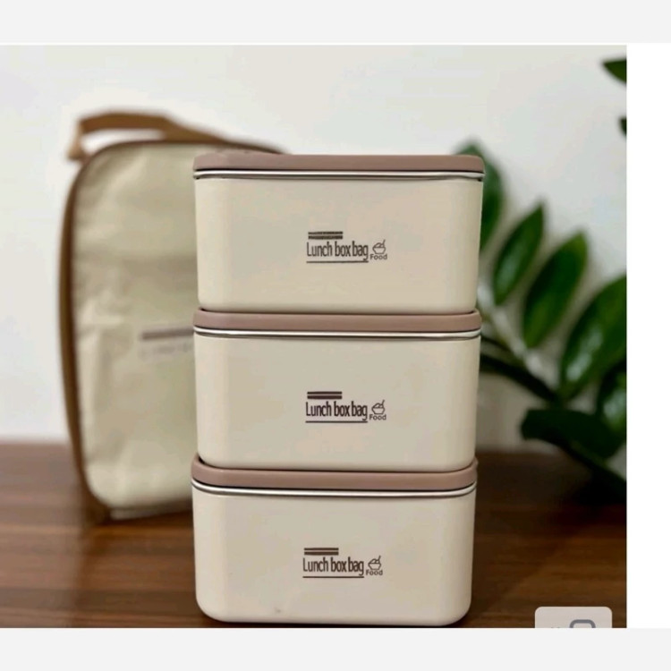 ظرف غذا لانچ باکس مستطیل 3تیکه کیف دار داخل ظروف استیل کیف عایق بدون نشتی