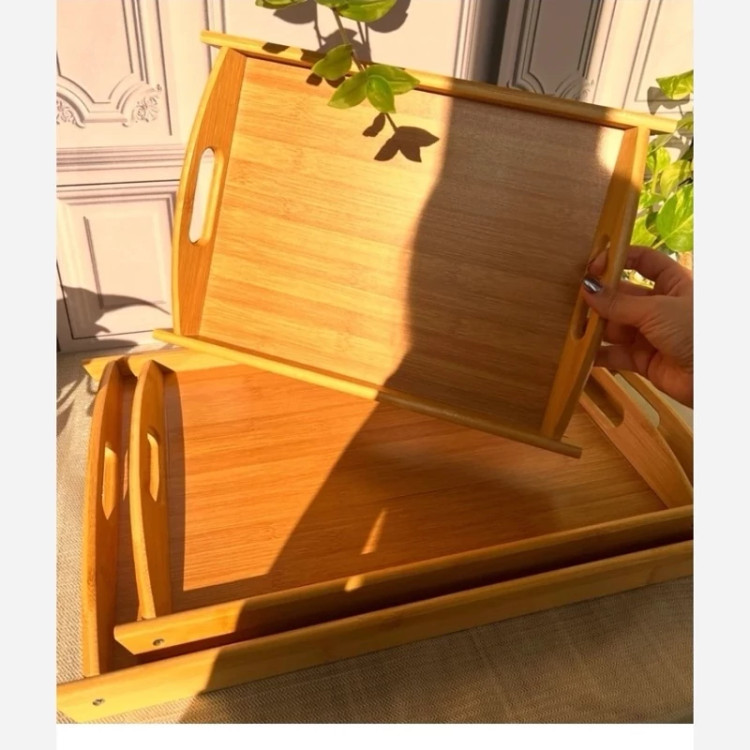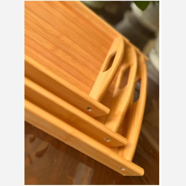 سینی سه عددی مستطیل بامبو دسته دار وارداتی ابعاد :25*36 30*43 34*51 کاملا ضد اب دسته محکم جنس کف چوب ضخیم ارسال به صورت پس کرایه