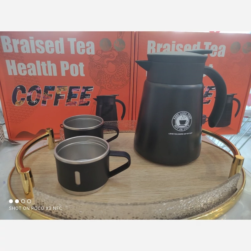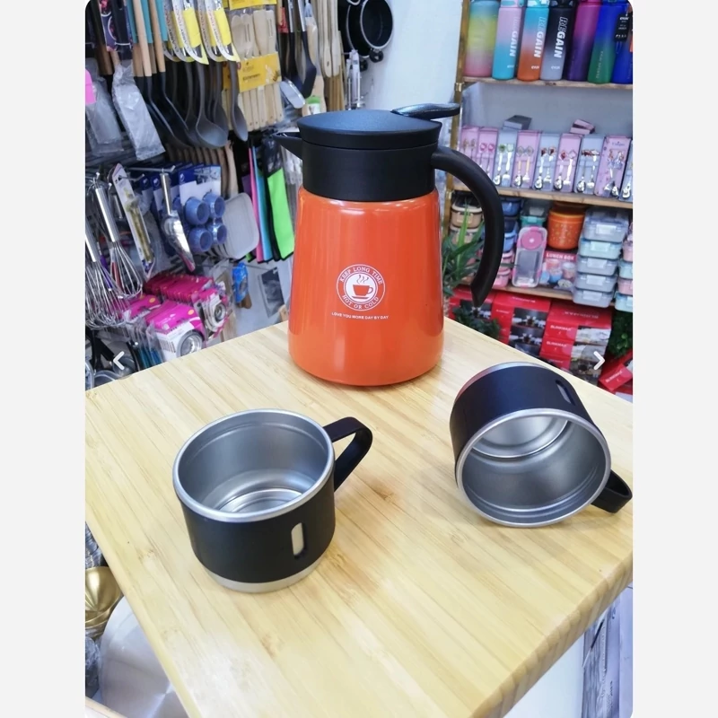 فلاسک 700میل دوعدد فنجان استیل استیل 304 رنگ مشکی و قرمز به همراه توری زیر لیوانی طلایی هزینه ارسال رایگان