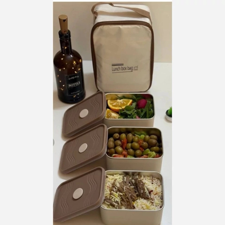 ظرف غذا لانچ باکس مستطیل 3تیکه کیف دار