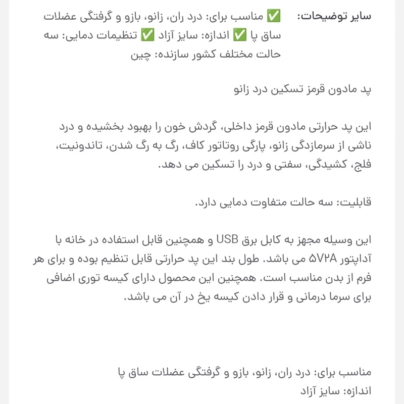 پد شارژی مادون قرمز جهت تسکین درد زانو ران ساق و بازو به همراه کابل شارژ ارسال رایگان