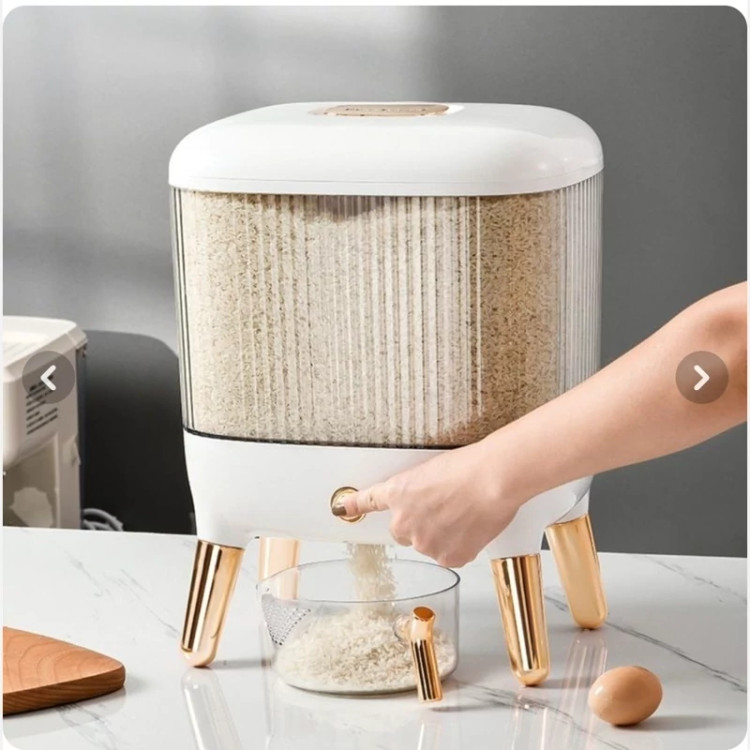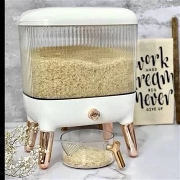 جا برنجی پایه دار آکرولیک 10کیلویی پس کرایه حجم 10کیلویی پایه طلایی جنس بدنه آکرولیک پیمانه دار