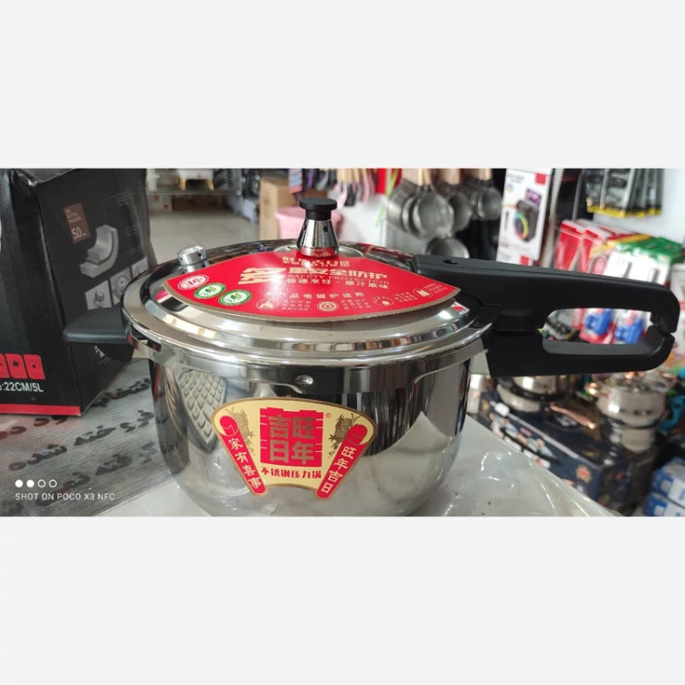 زودپز 5لیتری HOSTMA SAR وارداتی شیر اطمینان دار شیر ایمنی دار 5لیتری صرفه جویی در زمان پخت تا 70درصد فولاد استیل 18/8 دو دسته 22سانتی متری