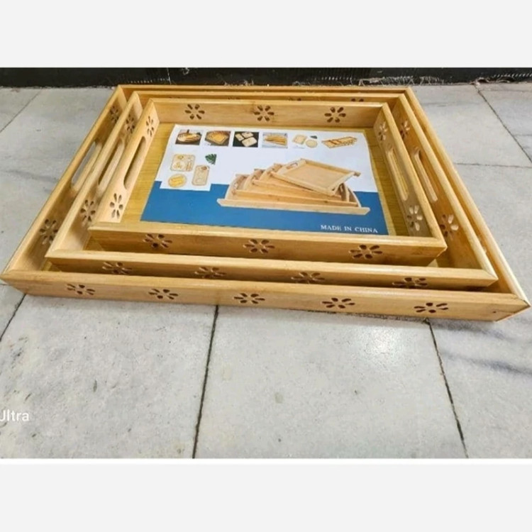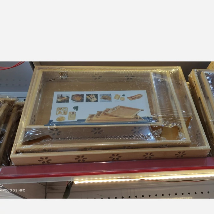 سینی مستطیل بامبو 3عددی ابعاد:32*22سانتی متر 26*38سانتی متر 28*41سانتی متر دسته دار