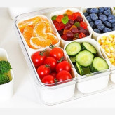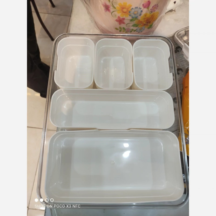 اردوخوری آکرولیک 5خانه آکرولیک نرم کیفیت عالی دسته دار وارداتی ابعاد ظروف داخلی 3 عدد ظرف به ابعاد 7*10 یک عدد 7*21 یک عدد10*21 عمق 5.5سانت ابعاد کلی :23*30به عمق 7سانت