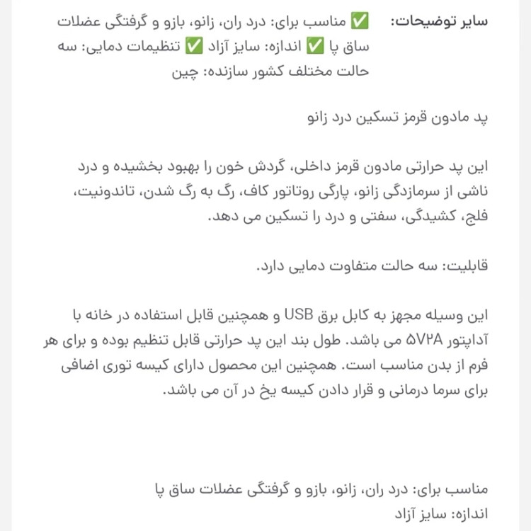 پد شارژی مادون قرمز جهت تسکین درد زانو ران ساق و بازو به همراه کابل شارژ
